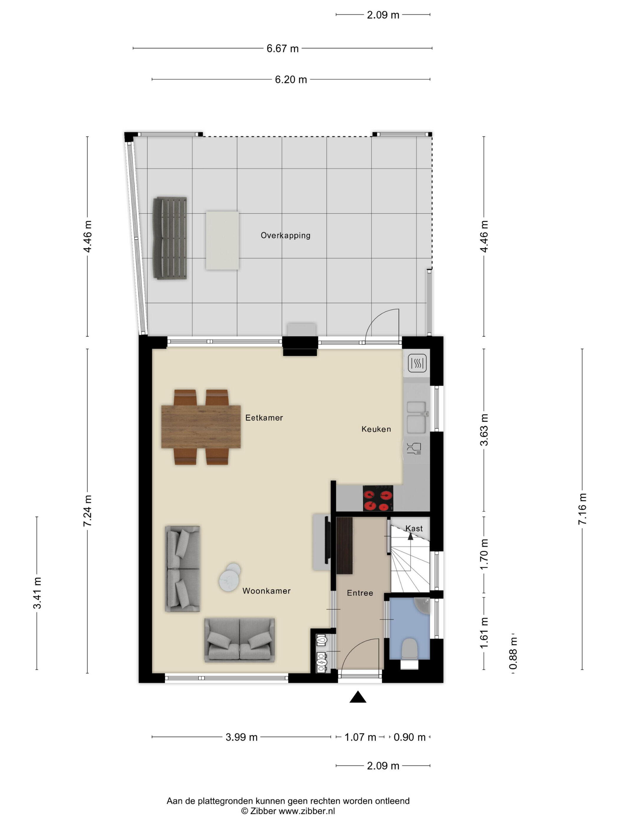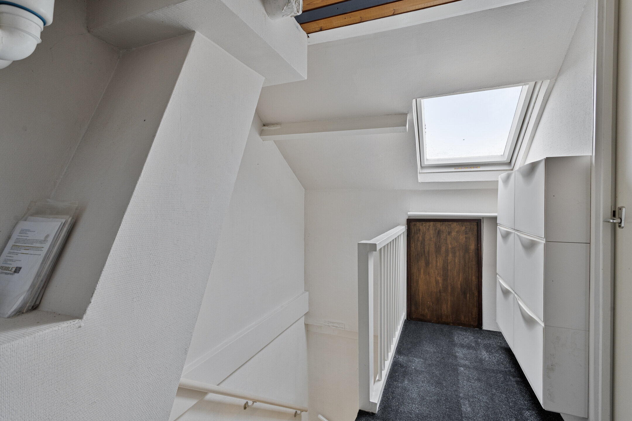 Je komt binnen via een charmante voortuin die direct uitnodigt. De hal is netjes afgewerkt en geeft toegang tot een modern, apart toilet en de trap naar boven. Een fijne, verzorgde entree die je warm welkom heet!
