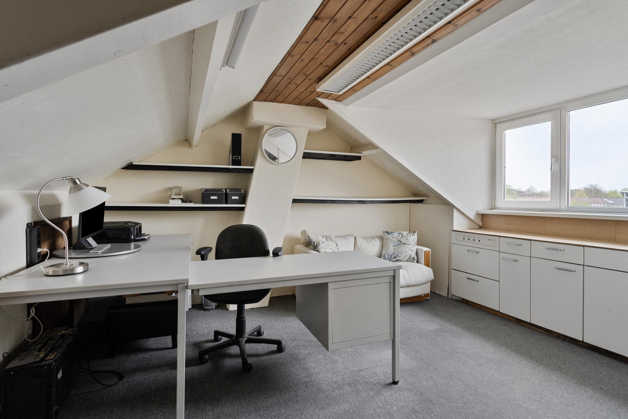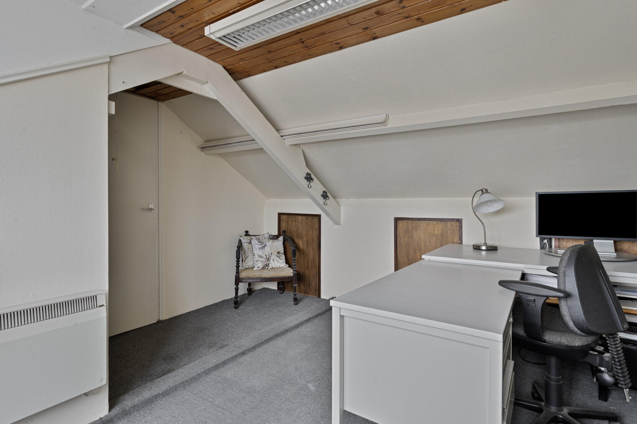 Op de eerste verdieping vind je drie ruime en lichte slaapkamers. Twee slaapkamers en de overloop hebben een praktische inbouwkast, heerlijk luxe! De badkamer is modern en compleet: een ligbad, een grote douche, toilet, wastafel met spiegel én ruimte voor de wasmachine en droger. Alles in stijlvolle zand- en grijstinten. De tweede verdieping biedt nog een extra kamer, momenteel ingericht als kantoor. Deze multifunctionele ruimte is voorzien van meerdere opbergruimtes, een draaikiepraam, elektrisch rolluik en leent zich ook uitstekend als logeer-, hobby- of speelkamer.
