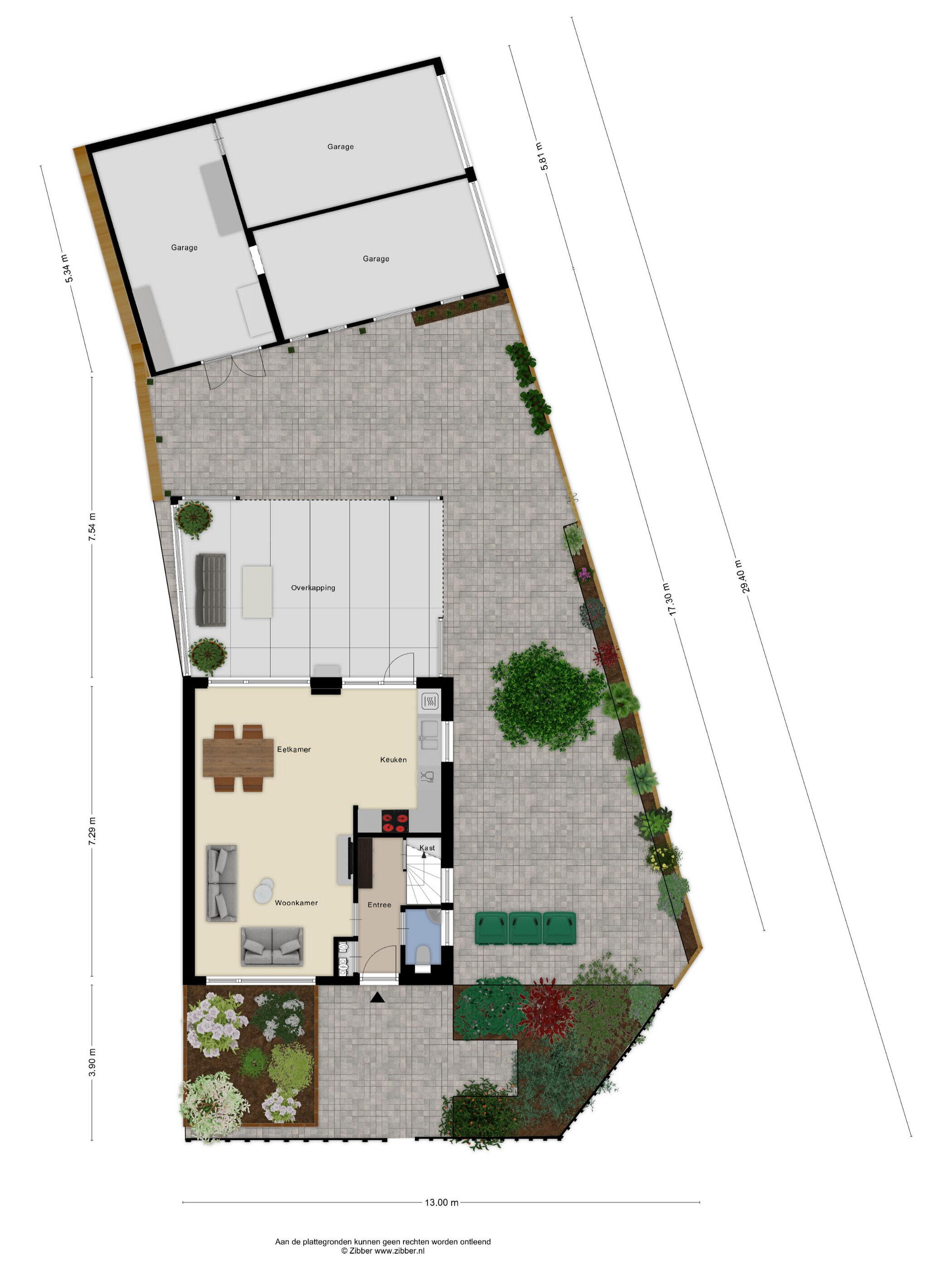 Wat een buitenruimte! Dankzij de hoekligging loopt de tuin rondom het huis. De tuin is onderhoudsvrij aangelegd met fraaie bestrating, aangevuld met enkele sierplanten. Aan het huis bevindt zich een heerlijke overkapping met uitzicht op de tuin. Door de grootte oppervlakte is er mogelijkheid tot het realiseren van meerdere zitgedeeltes in de tuin.
